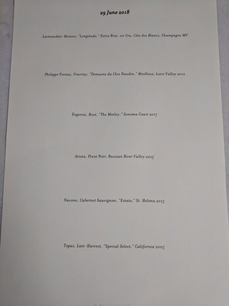 I elected to do the wine pairing option where they choose wines that pair well with the dishes. It was a LOT of wine! June 30, 2018June 30, 2018 768 × 1024 IMG_20180630_082856