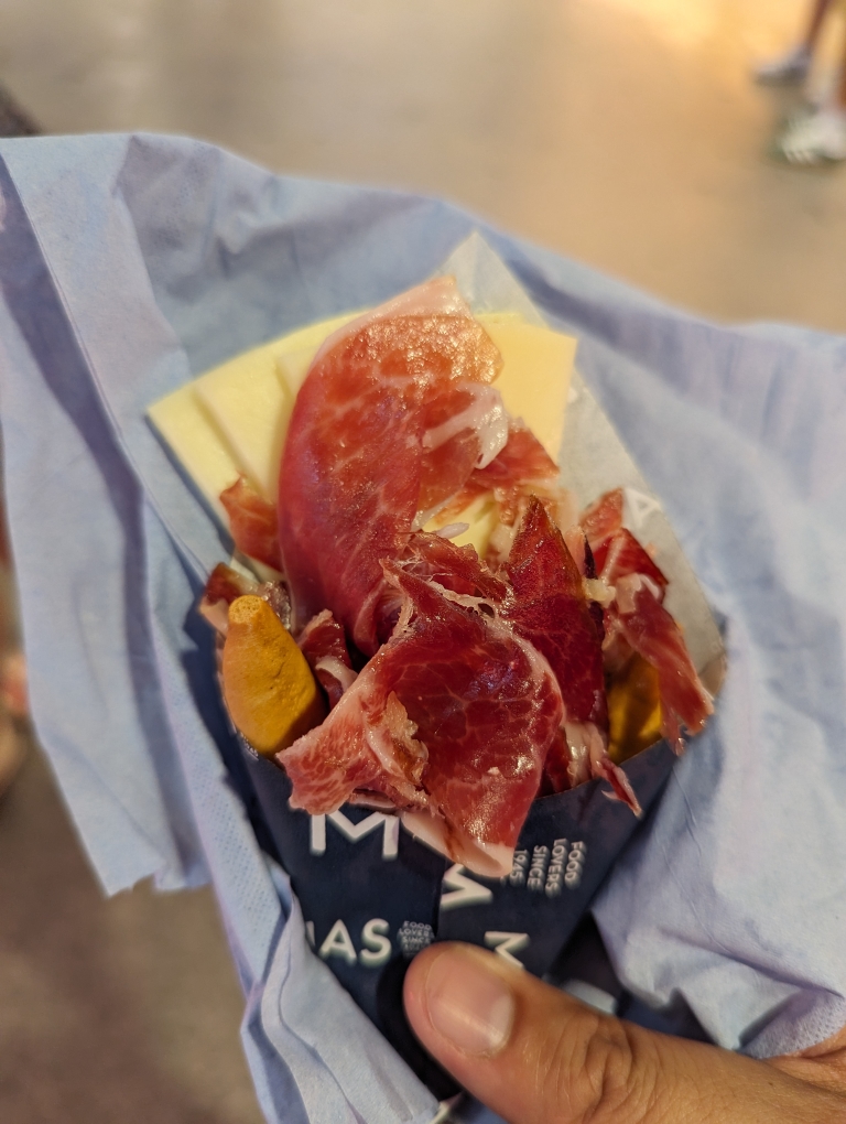 The one thing I wanted to try was the Jamón ibérico. You could purchase small cones of meat or meat/cheese from the various butcher shops.