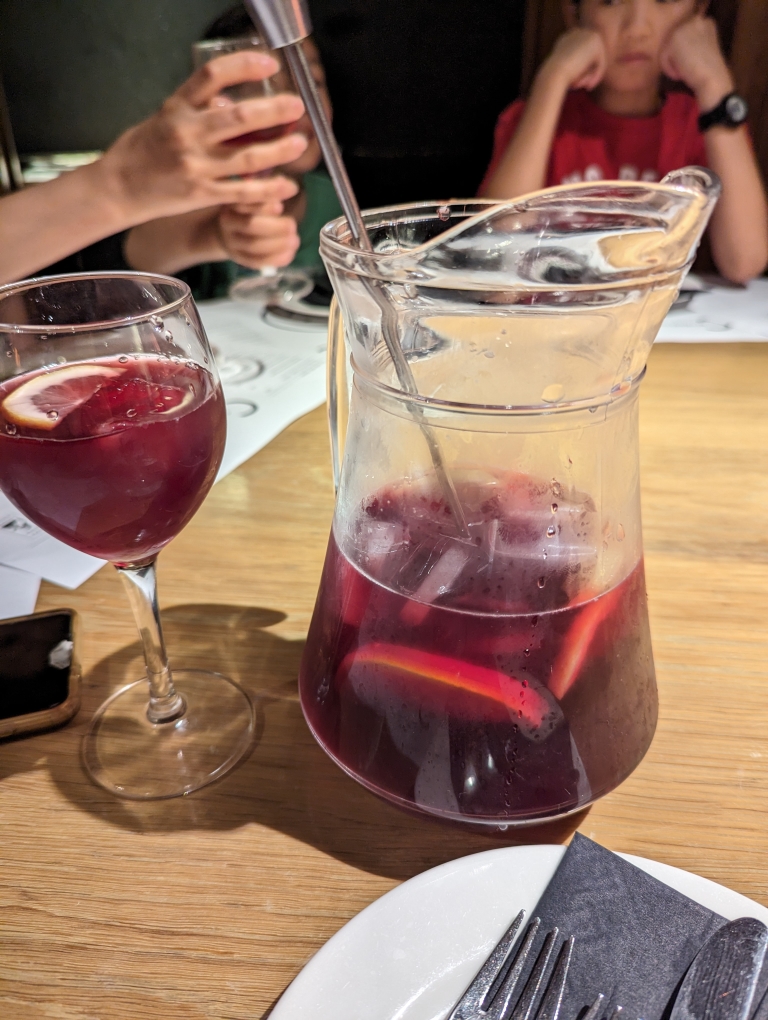We met up with my parents and sister’s family for dinner at Ciutat Comtal (Ciudad Condal) where we indulged in sangria and tapas. Overall the food was tasty.