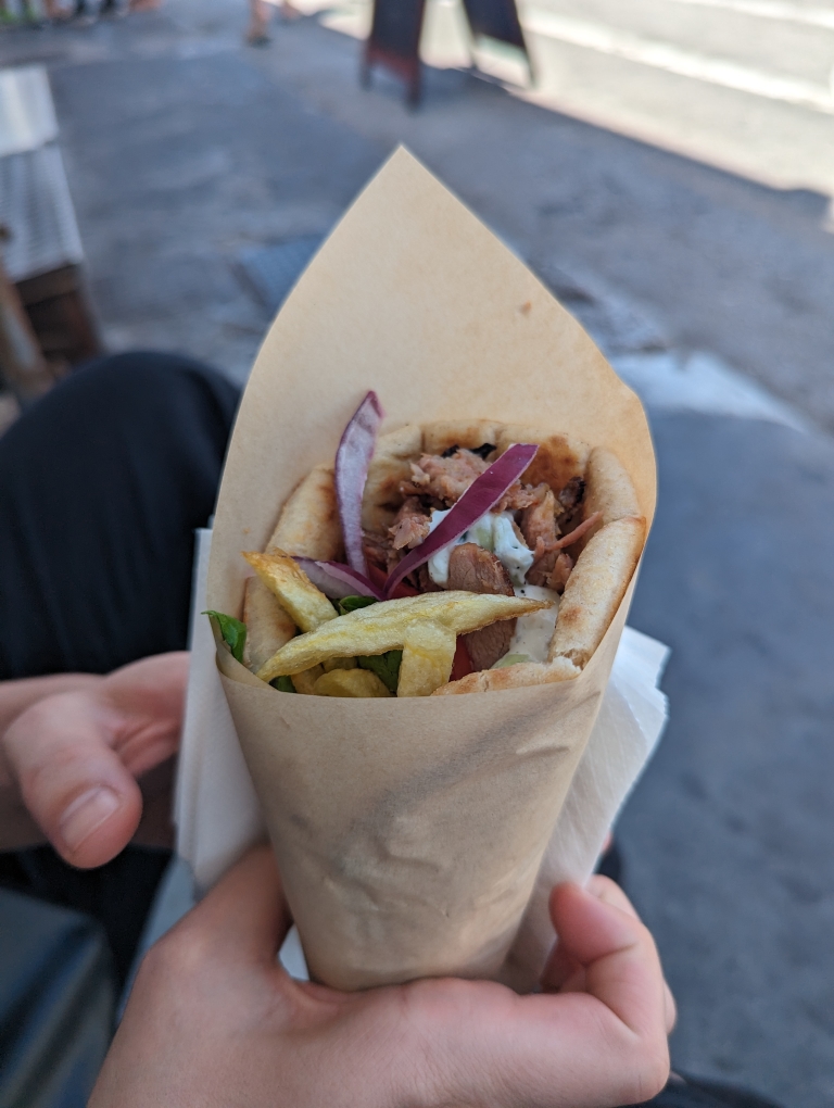 I had looked up a relatively cheap place that was supposed to have some good gyros. We found our way to Lucky’s Souvlakis and ordered both a chicken and pork gyro. Both were quite tasty.