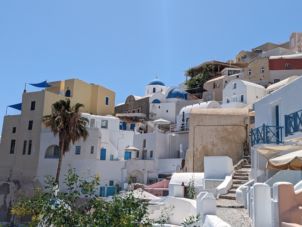 We arrived in Oia in the early afternoon. A combination of the heat and the crowded narrow streets made the experience less than idyllic. Given that I didn’t know if we’d ever be back to this island, I wanted to at least walk around for a little bit to take it in.