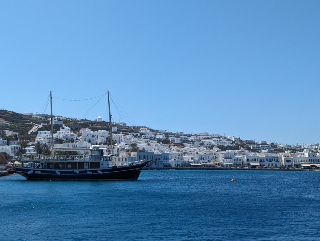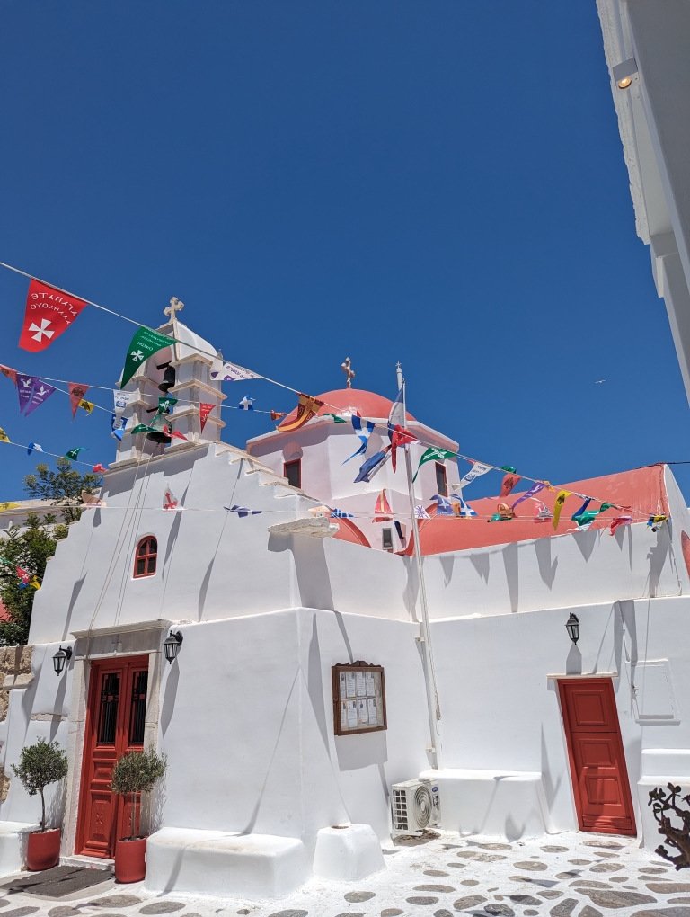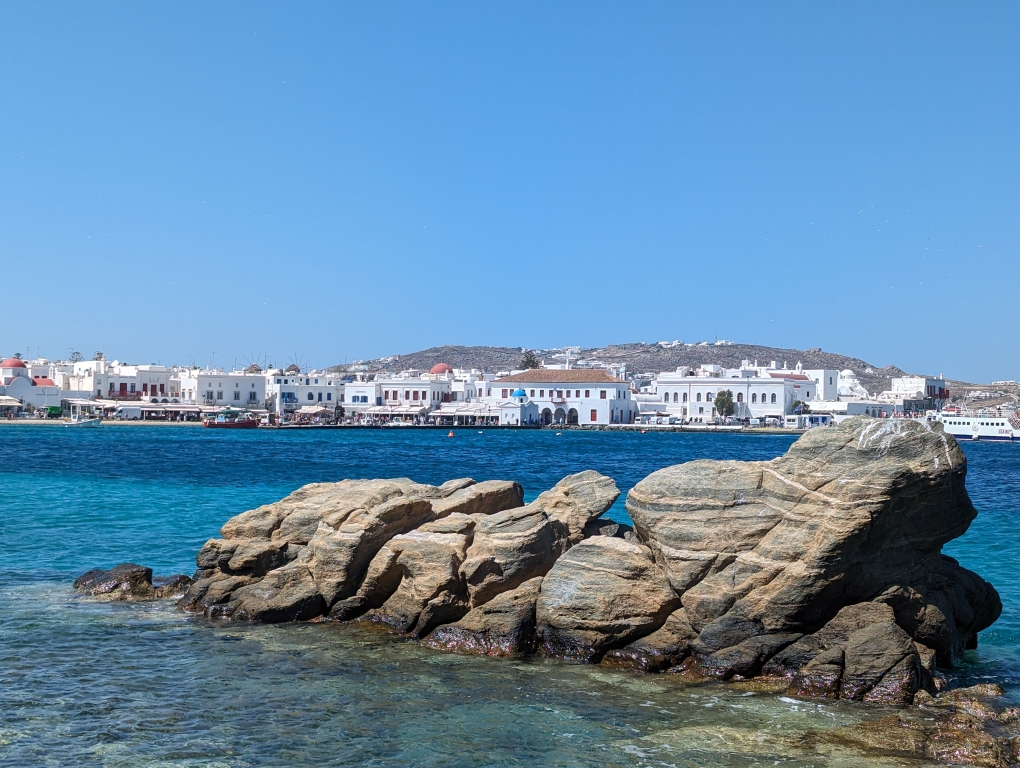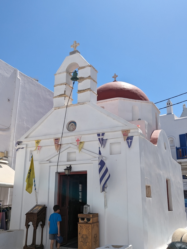 Our last port stop before ending in Athens was on the island of Mykonos. This island is known as a party island and I think A LOT more happens in the evenings and late into the night/early mornings. We did not have any grand plans but wanted to go into town and walk around. The island is best known for their windmills (Kato Mili) and an area called Little Venice (Alefkandra). While the temperatures were still in the 80s, this seaside town had a nice breeze so it was more comfortable walking around. It was nice because we tagged along with my sister and her family doing a walking tour of the village. We also stopped for a nice lunch by the water. A nice final day before we disembarked the following day in Athens.