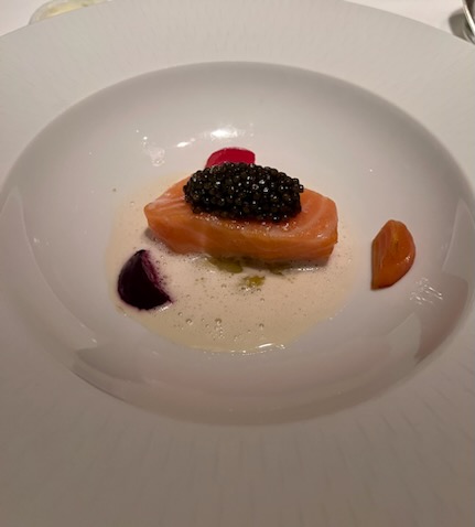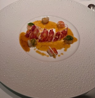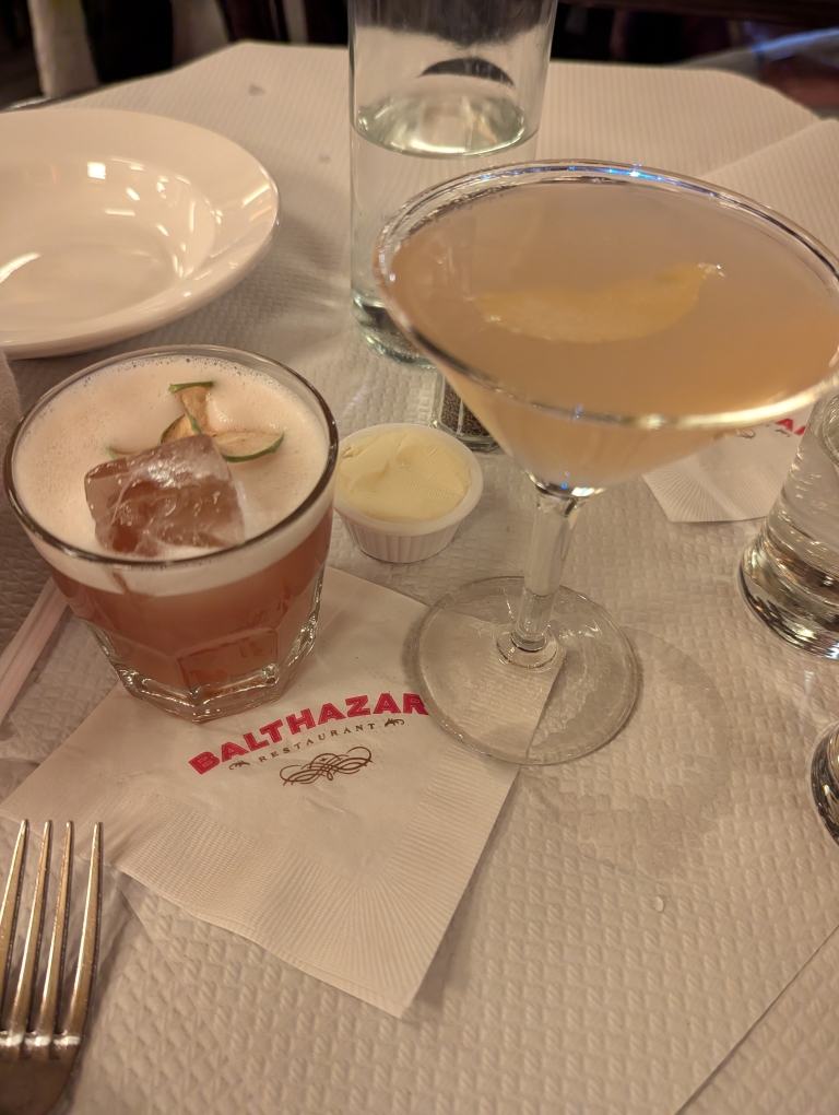 Our 8:15 pm dinner reservations were at Le Bernardin by Eric Ripert. I didn’t post about last year’s trip but D and I had lunch at Le Bernardin and it was delicious. This time we elected to do the tasting menu. We each started with a cocktail and then had multiple seafood dishes that were all quite tasty. I also had a glass of wine picked by the sommelier to pair with the rest of my meal.