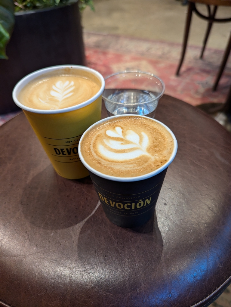 Unfortunately entrance onto campus was blocked off only to students, faculty and those who had prior permission to gain entry. I think that the school was trying to limit potential bad actors from coming onto campus and instigating not peaceful protests. We gave up on seeing the school and found our way back to the subway to head back toward our hotel. We had a little bit of time before our dinner reservation with my cousin so stopped at Devoción Coffee.