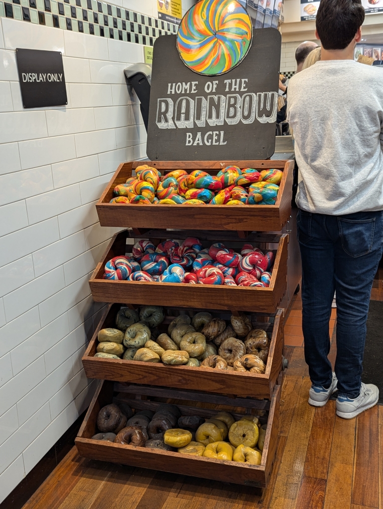 Saturday morning D and I got ready and walked over to the Liberty Bagel located at the southeast corner of Central Park near the Apple store. One thing Liberty Bagel is known for is their rainbow bagel and they had a whole display front and center. There was also a decent line at this place but just like Ess-a-bagel the wait wasn’t too bad. These bagels were definitely better than the previous day and we sat out on some public tables looking at The Plaza hotel and the Apple Store.