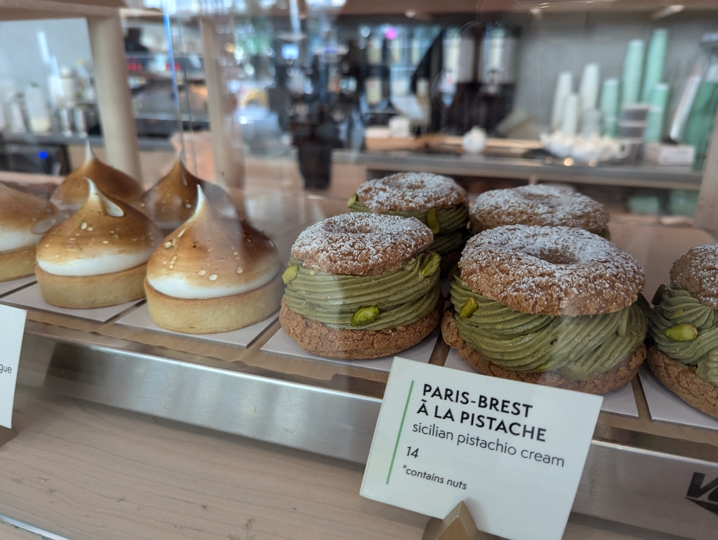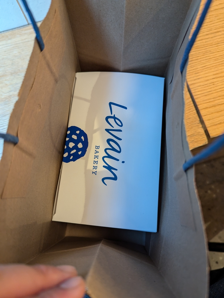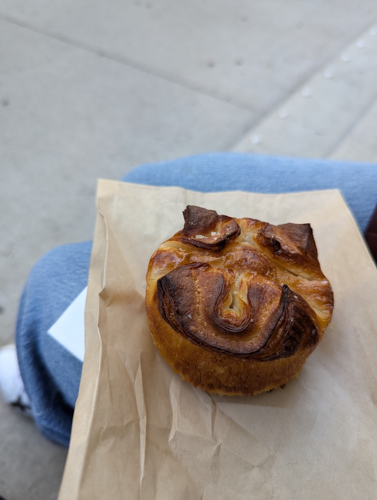 We didn’t actually go into the park since it was pretty busy but continued south and then crossed back into Chelsea to check out the Whitney’s gift shop (we didn’t have time to actually see the museum because of our broadway matinee at 3 pm). There is a cute little bakery within the Whitney called Frenchette. They are known for their croissants and while we were in line they had a few signs stating their Kouign-Amann had won some awards. We elected to try the Kouign-Amann instead of a croissant.