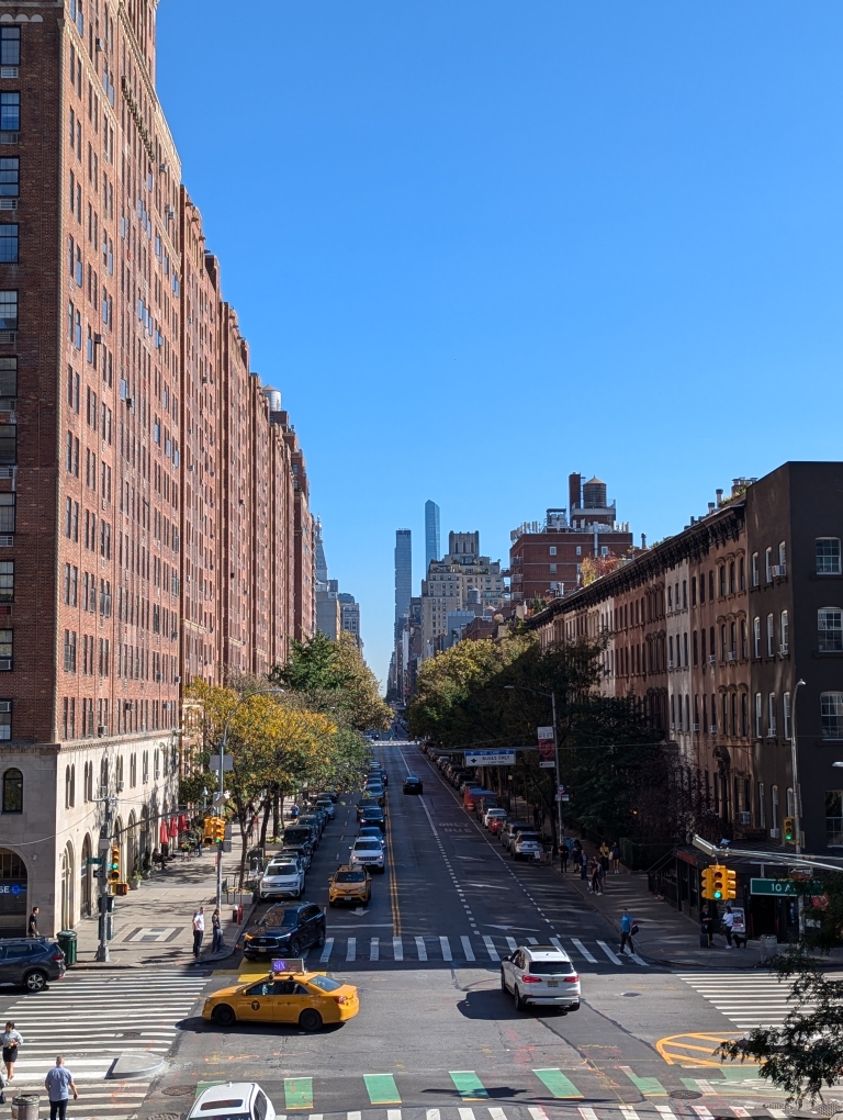 After a few hours at MOMA we walked over to Times Square to see about getting some cheap(er) Broadway tickets (either for that same day or the next day’s matinees). There was a DESI fest performance right next to the line and after waiting for about an hour we reached the front and got two tickets for the next day’s matinee showing for Yellowface. I was getting pretty hungry but it was also inching closer to dinner. I wanted to get a snack of sorts and I remember seeing some video about Billy’s hot dog cart near Central Park. It’s located on the UWS and dinner happened to be up there so we hopped on a subway and took it up to 96th street and walked a few blocks south to the hot dog cart. He was getting food ready for another customer and then when I ordered he gave D a free snapple for being so patient. I thought that was quite nice. After snagging a hot dog and some chips we walked into Central Park and found a bench to eat and people watch. Both of us needed to use the restroom and I thought there was one sort of nearby from what I saw on Google maps so we meandered through the park. We were right by the Jacqueline Kennedy Onassis Reservoir so it was quite scenic.