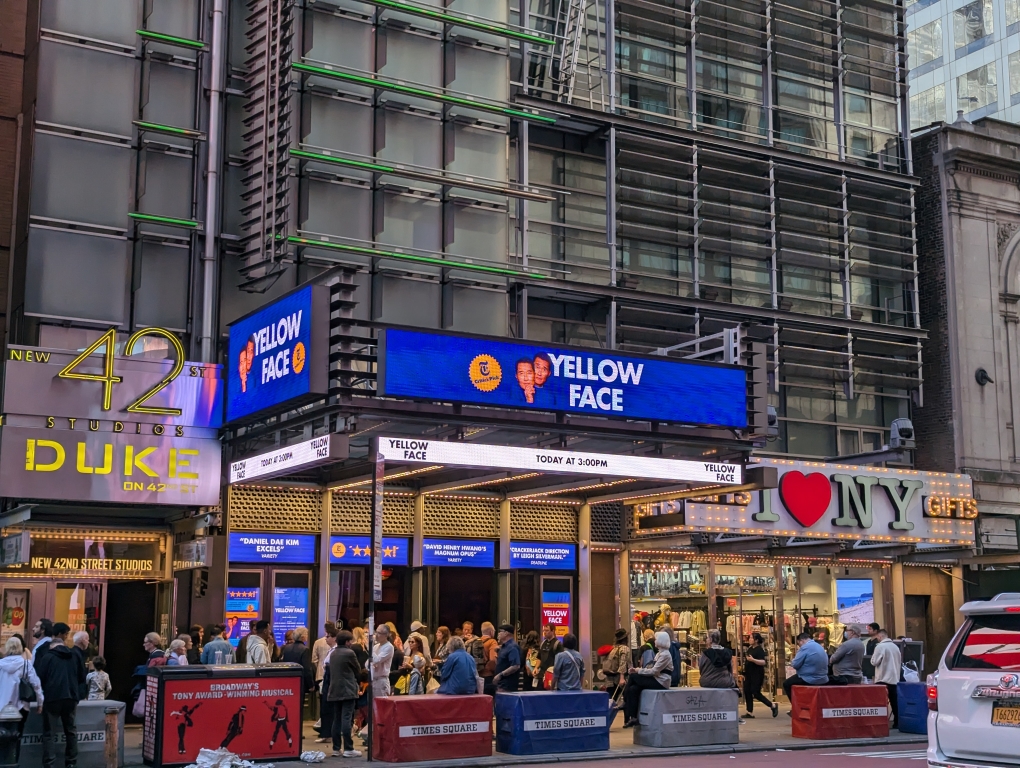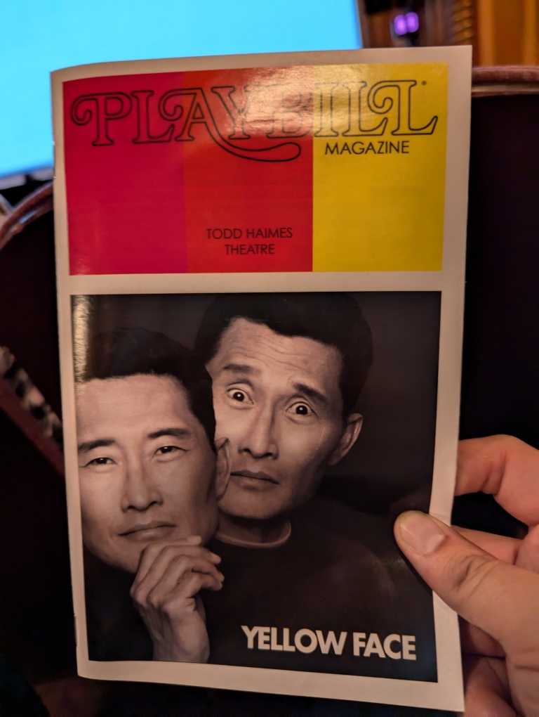 Yellowface was at the Todd Haimes Theatre just off of Times Square. The show starred Daniel Dae Kim and some folks from New Amsterdam apparently. Overall I liked the show. The show is a semi-autobiographical story of the playwright (David Henry Hwang) as he tries to put on a play in 1993. It deals with race and media/politics. Overall entertaining and thought-provoking.