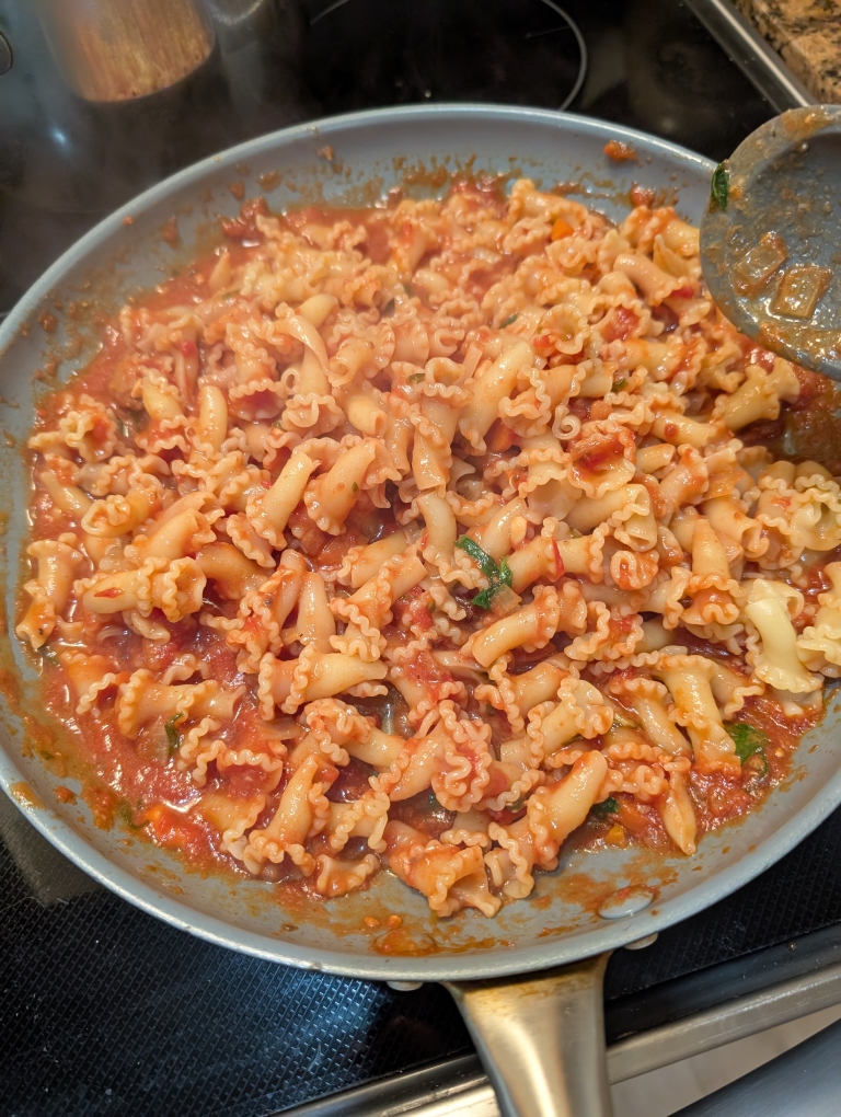 - Add pasta water and combine with pasta and top with freshly grated parmigiana Reggiano