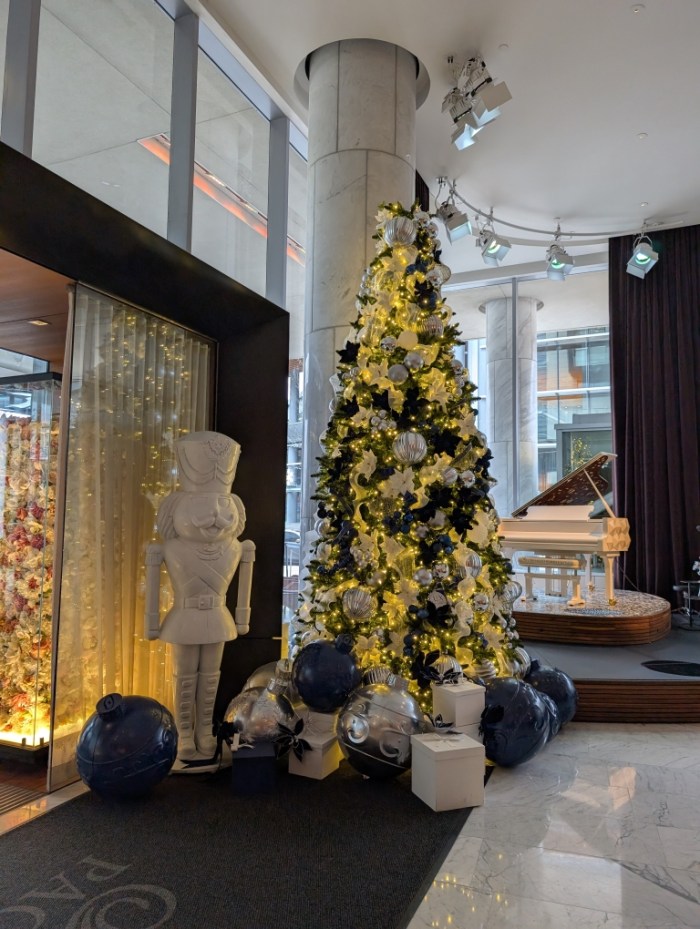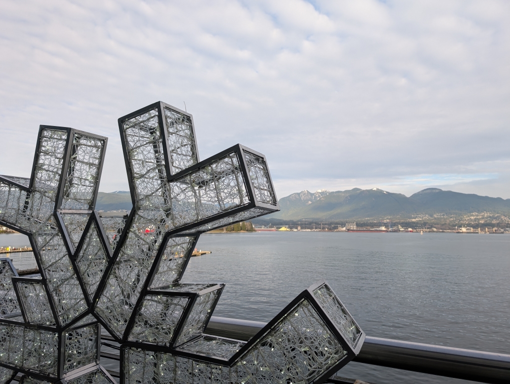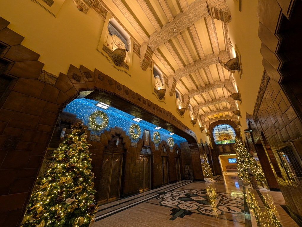 We continued to make our way west along the waterfront over to Canada Place and the Convention Center. From here you can view the waterfront and north Vancouver (opposite of where we had been the day before). We contemplated visiting the Christmas Market but with the admission fee decided it wasn’t really worth it for us. Along the way we walked to and into the Marine Building, which is known for its art deco style.