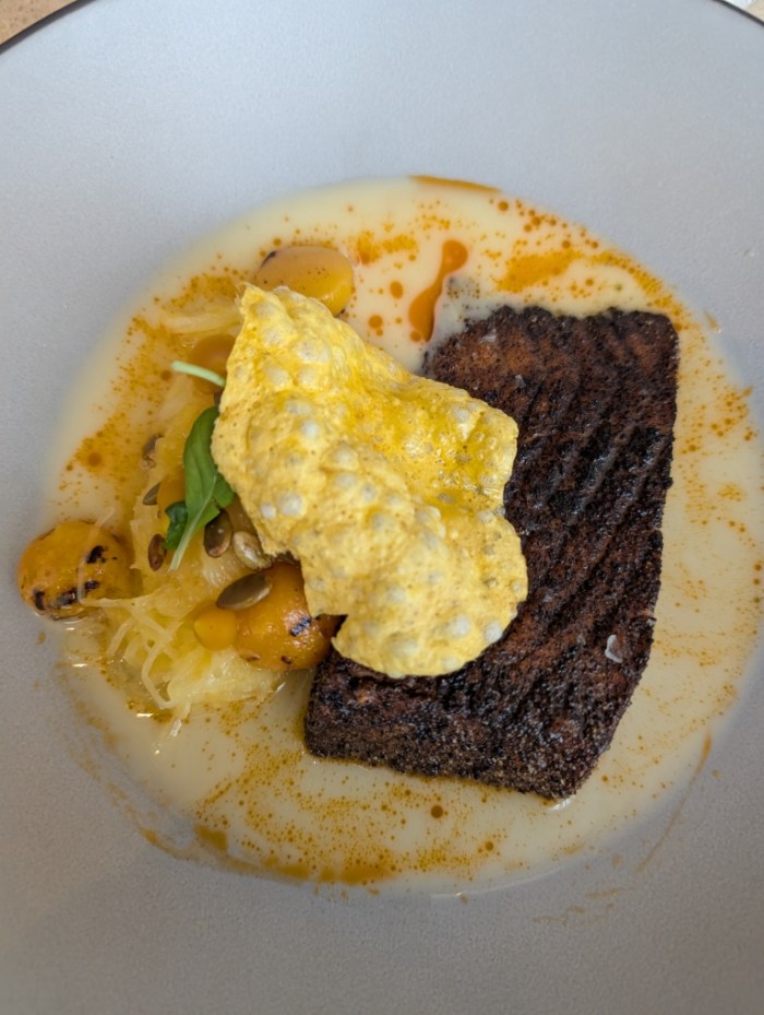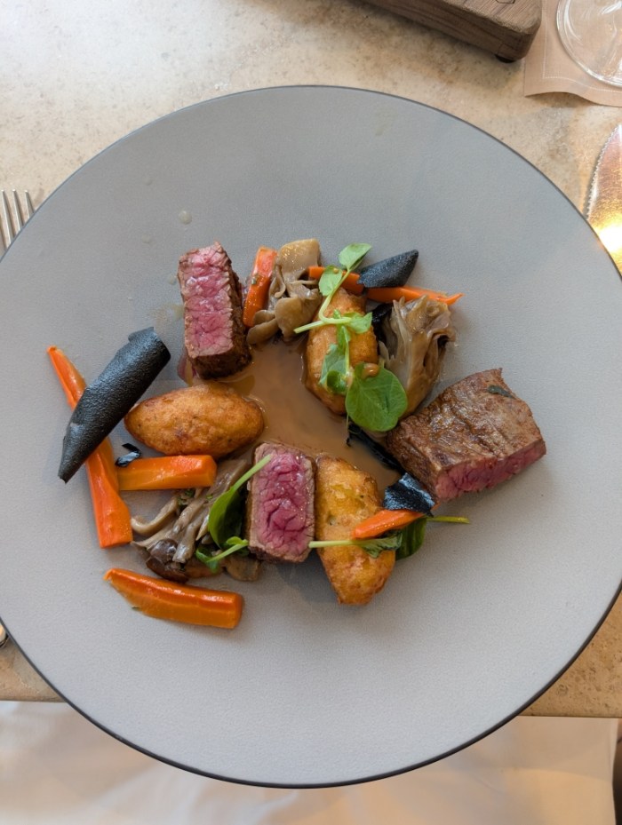 Afterward we went back to the hotel, packed up, checked out and then drove through Stanley Park. This park is located just north-northwest of the city. While we just drove around the entire park, I could see the many benefits of this place. Multiple areas that you could picnic but more importantly you could run, bike, hike, walk in nature so close to the city. D’s final birthday meal was lunch at The Botanist, so we parked at the Convention Center and walked over to the restaurant which was located within the Fairmont Hotel. We started the meal by sharing a handcut tagliatelle with mushrooms that was quite tasty. D then had the black pepper crusted salmon while I had the flank steak. Both dishes were quite good. Also our cocktails were good as well