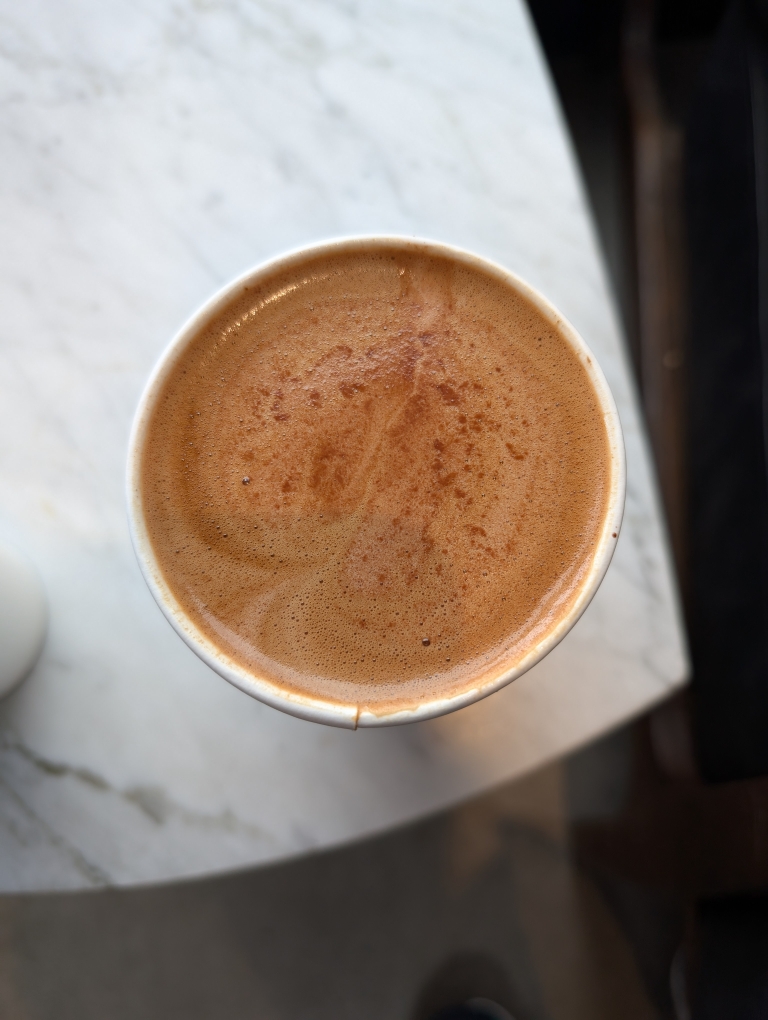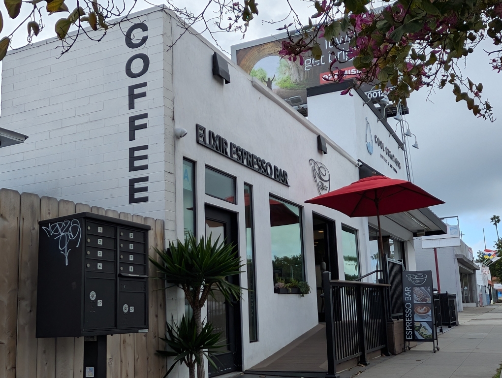 We haven’t been down to the area in probably 10 years now so I had done some research on food places. We settled on the Pacific Beach Fish Shop. This place is unique in that you choose the fish and then the means of getting it into your mouth (taco, salad, sandwich, plate). D had two of their pre-made recipe tacos: TKO Taco (Mahi Mahi) & Pineapple Express taco (Mahi Mahi) while I had their fresh catches of the day: Halibut taco & Rockfish taco. Overall I think they were tasty though one of D’s fish was kinda dry and there wasn’t any sauce on that one. We grabbed some coffee two doors down at Elixir Espresso Bar.