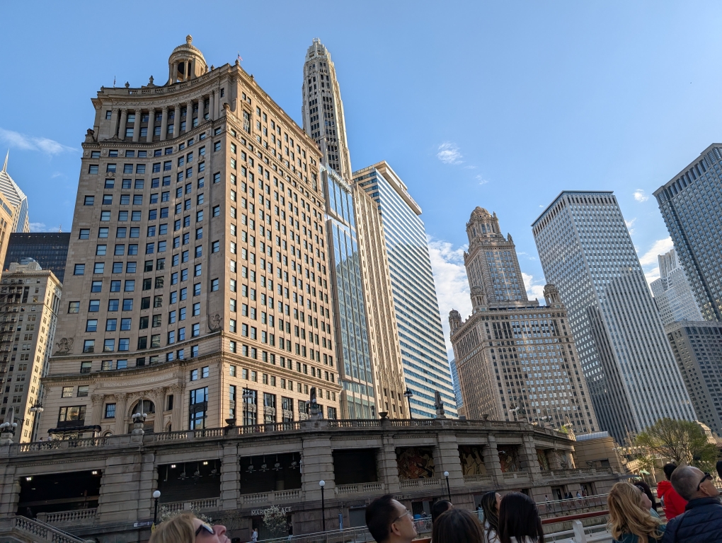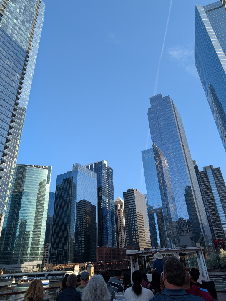 We walked down Mich Ave back to the hotel but first stopped at the Starbucks Reserve Roastery and passed the newly opened Harry Potter store. After a brief rest, we met up with my sister and her kids for the Shoreline Architecture River Tour. This was also something I had never done, while I know many who have been on it multiple times. There are a few different companies that run these tours. I thought our tour guide was entertaining (I believe he also is a standup comic so that probably helps) and informative. I learned quite a bit about the many buildings of Chicago.