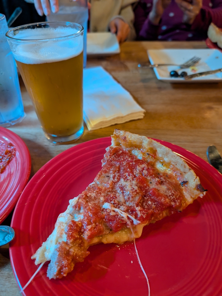 After the tour, we all went to get deep dish pizza at Lou Malnati’s, which happened to be just across the street from where the boat tour docks. I’ve had the chance to try several different deep dish variations (Giordano’s, Lou Malnati’s, Gino’s East, Pizzeria Due). They are all slightly different but I have enjoyed Lou Malnati’s and so has my sister so that is the one we picked (D’s first time trying).