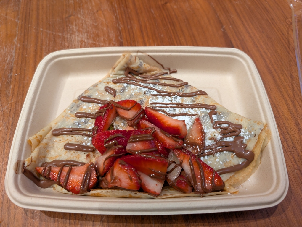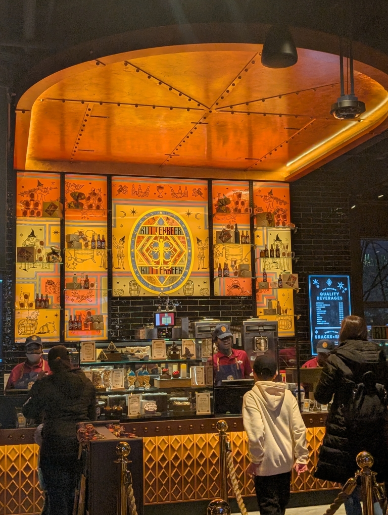 After dinner we stopped at Garrett Popcorn for some Caramel Crisp and CheeseCorn popcorn. The kids wanted to check out the Harry Potter store and get some Butterbeer. I hadn’t tried it before and it was okay. Finally for dessert we walked back down south of the river to the Nutella Cafe where D and I shared a nutella crepe with strawberries. My sister also purchased a personalized jar.