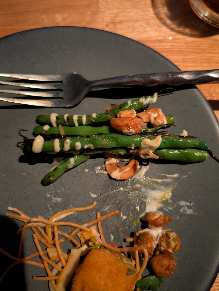 Using public transportation, we then made our way to The West Loop for our dinner reservation at Girl & The Goat. They typically recommend that you share dishes and for the two of us our waiter mentioned between 4-6 dishes would be good. We ordered: chickpea fritters, pan roasted halibut, the roasted pig face, and the goat empanadas. They also gifted us a side of their sautéed greenbeans (the waiter had been pushing that so unsure if they just had purchased too many or maybe they were going bad soon). It was just funny that they brought us some – they were tasty. For dessert we had the peanut butter and chocolate (brownie bites . peanut butter mousse . chocolate peanut butter crunch . passionfruit honey . chocolate caramel whip).