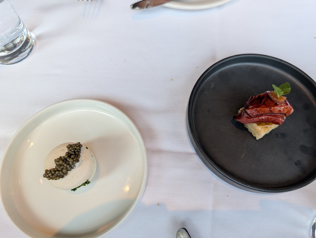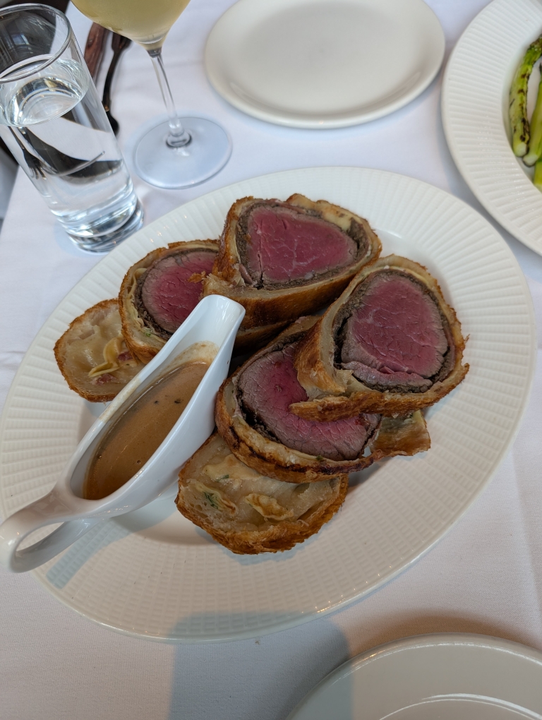 Dinner was at Obélix, located in the River North neighborhood. We elected to share the Beef Wellington (not realizing it takes 1 hour to prepare). D had a caviar macaron and I had the macaron au foie gras and foie gras and crispy rice (their take on a nigiri). I really enjoyed the foie gras and crispy rice. The wellington was also quite good. D really enjoyed their fries as well. We finished off with the trio of desserts.