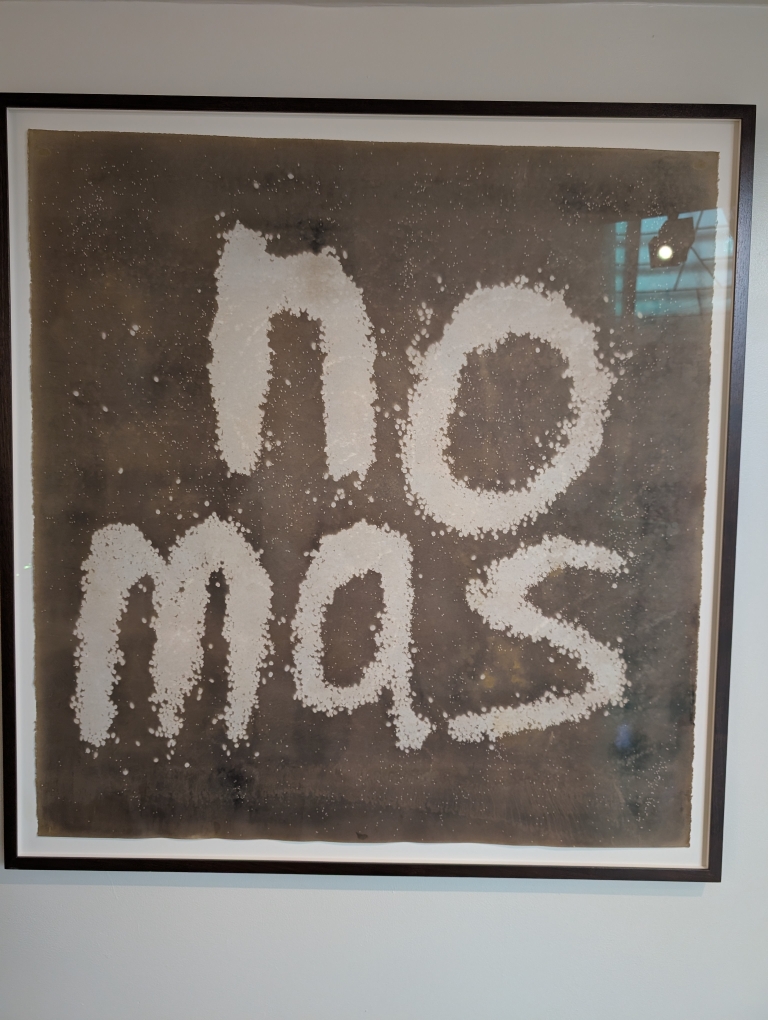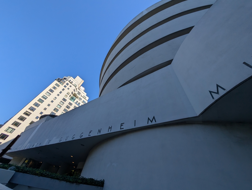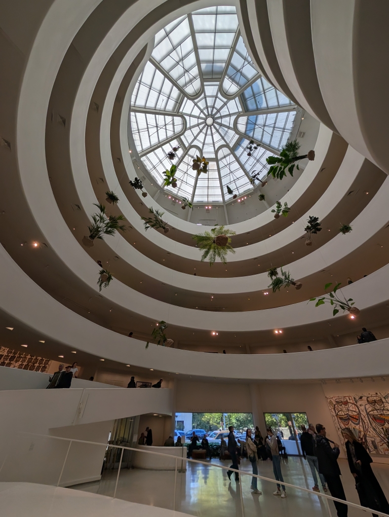 We decided to visit the (Solomon R.) Guggenheim Museum. We had recently watched a reality show of this mother daughter team building the last Frank Lloyd Wright designed home and figured this was apropo given that Wright designed the Guggenheim. The weather was great and we elected to walk from our hotel (at 51st) to the museum (at 88th) walking along the eastern edge of Central Park. And then after that we explored the museum, which consists of a spiral walkway/ramp going up 6 floors total. They were having a Rashid Johnson exhibit, whose name will later come into play at the end of this post.