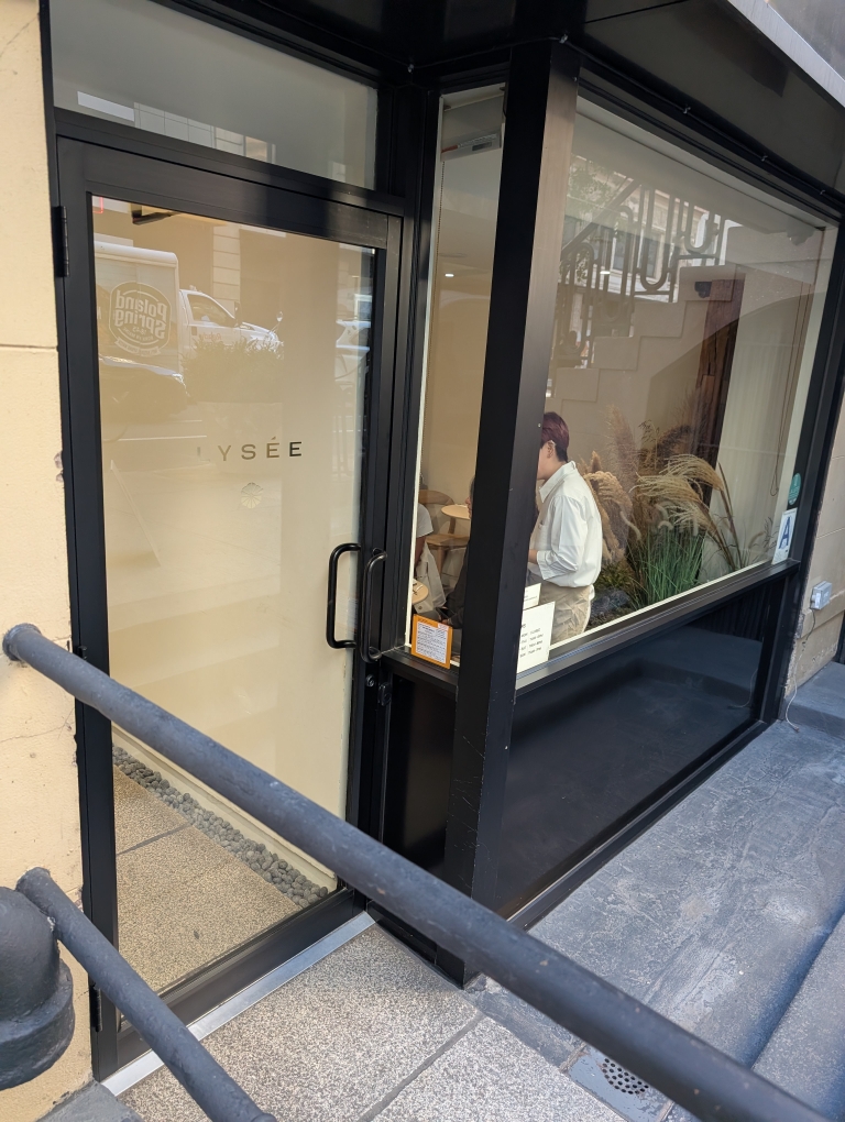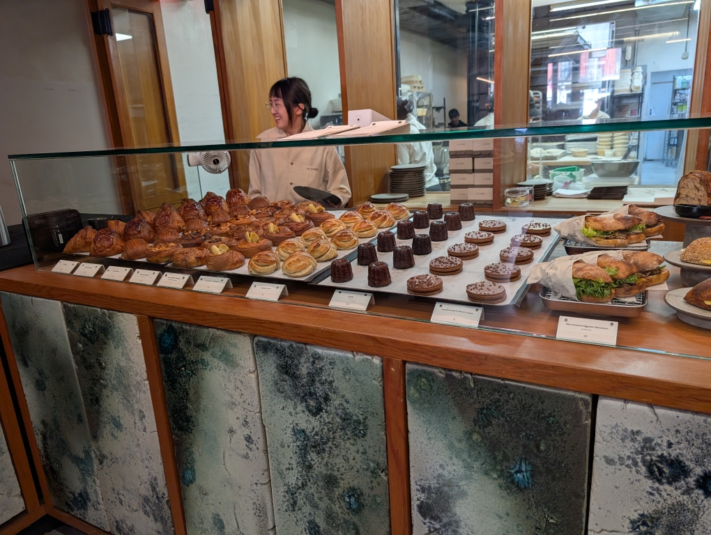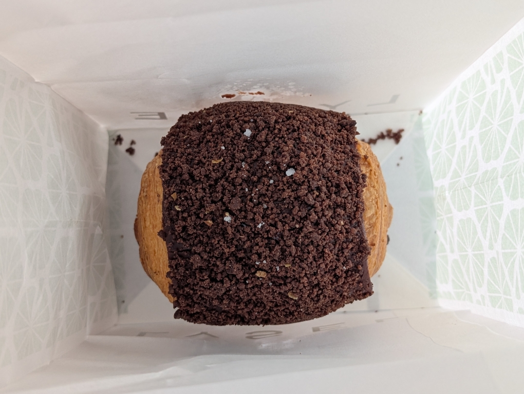After seeing a youtube video and also relative that went to Lysée bakery by Chef Eunji Lee. All their pastries look wonderful but since we just had lunch and were having dinner in less than 2 hours, we had to restrain ourselves. We got the signature Lysee dessert – a mousse cake featuring Korean toasted brown rice mousse, pecan praline, and a sablé base, with a brown rice caramel component – and the Chocolate croissant version 2.0. Initially we got 2 of the Lysee cakes thinking we’d give one to our friends (but then realized that it was delicate and needed to be kept refrigerated (which we didn’t have in our hotel room) or consumed within an hour or so). So we made the tough decision to just eat it ourselves.