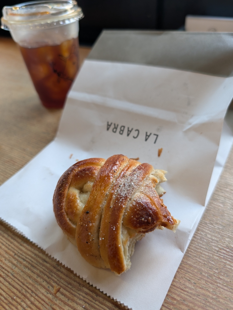 Our Sunday we decided to spend down in the East Village area. We first went to La Cabra bakery for some breakfast. Today also marked us standing in various lines. We shared a cardamom bun and croissant (they’re supposedly known for having one of the best croissants – it was good and quite airy but I don’t know if it is the best I’ve had). I also had a cortado in a wee cup.