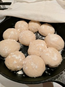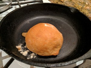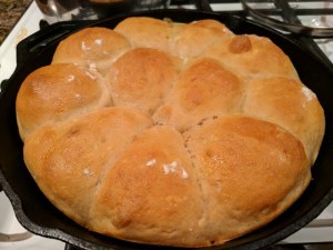 For this recipe, I did an egg wash on the dough and baked it for ~23 minutes (internal temp hit around 205F). The small cast iron was a tester for my wife to make sure it tasted okay.